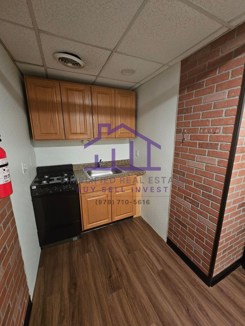 This cozy studio apartment is located at 90 Main St in Allenstown, NH and offers approximately 300 sq. ft. of efficient living space. Situated on the first floor, the unit features a functional layout with a kitchen equipped with a refrigerator and stove.